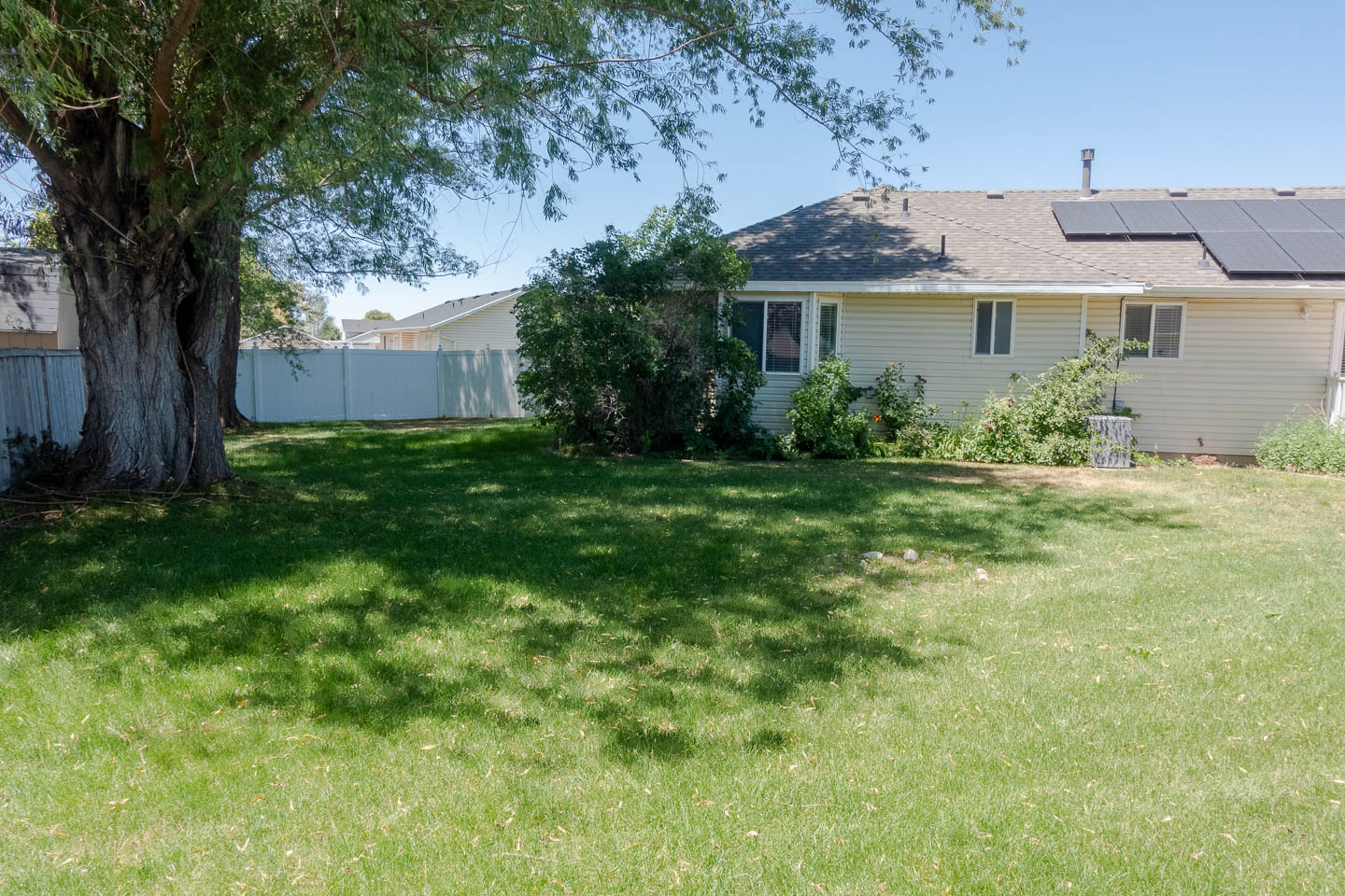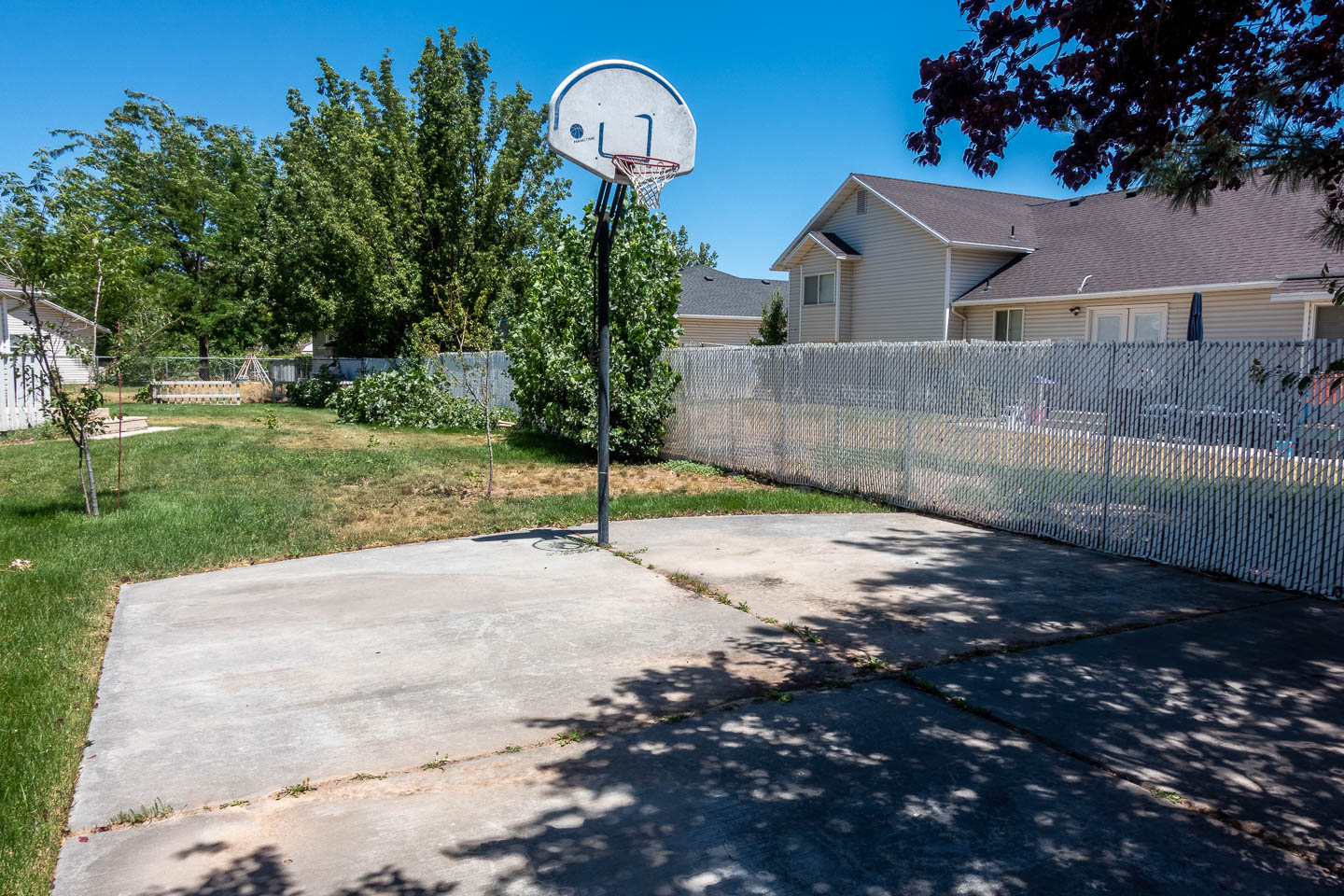 ⭐️ Situated on 1/3 acre, there’s plenty of room for fun! The backyard has a large deck, cement basketball court, big grassy area, fruit & shade trees, & garden! Tenant is responsible for yard care.